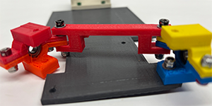 - Line up the holes on the base of the Servo Mount with the holes on the Base Plate. Attach with screws (m3 #10/red ) and bolts.