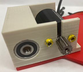 - Add at least one washer against the left side of the gear, then a bolt against this washer and then a final washer between the bolt and the Ball Bearing.