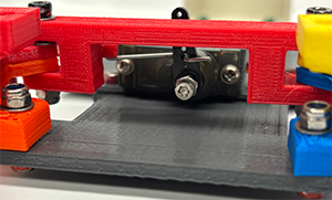 - Ask the teacher to drill a hole (1/8 bit) through the two existing holes in the Motor Mount through the Base. Connect the them with a screw (m3 #12/green) and a nut.